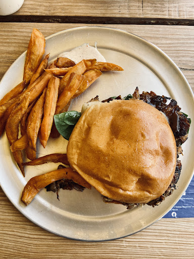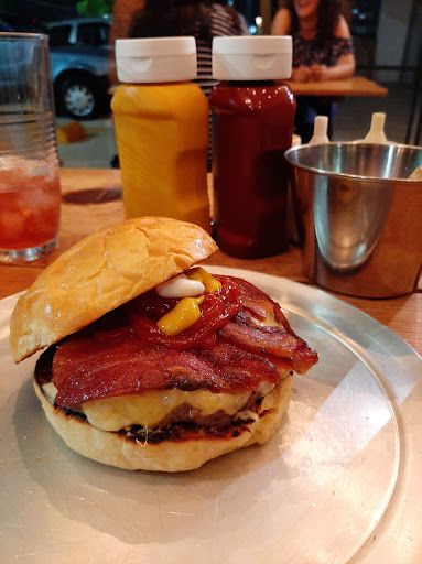 Read moreLas hamburguesas están ricas, incluyendo el pan, y está interesante las mezclas de ingredientes que tienen. La hamburguesa con pera y espinacas está rica, aunque la pera podría estar un poquito más asada. La hamburguesa con queso azul y manzana está rica pero casi no me supo la manzana. Me encantaron las papas de camote a la francesa, muy ricas! Particularmente me gustaron más que las de papa normales. El Mac & cheese estaba también rico estilo queso amarillo denso. Buena porción. El agua fresca estaba muy rica y pedir una jarra sale super barato! Si lo recomiendo. La atención fue excelente todo el tiempo la mesera muy atenta y nos dieron un platito de camote a la francesa para probar. El lugar está pequeño pero las bancas al exterior están excelentes...