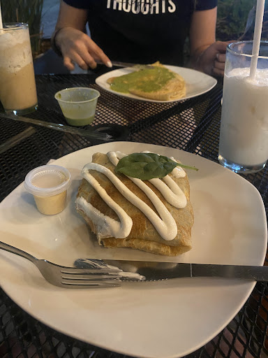 Read moreDeliciosa variedad de alimentos, no solo crepas sino también panninis, ensaladas y bebidas. Las vistas son increíbles dada su ubicación justo a la mitad de la avenida Madero en el centro Histórico de Aguascalientes. Estacionamiento justo enfrente. Evoca los cafés iris de Les Champs Ellisees. De muy fácil acceso y muy cómodo. Imprescindible para los visitantes antes de recorrer la plaza de la patria. Ampliamente...