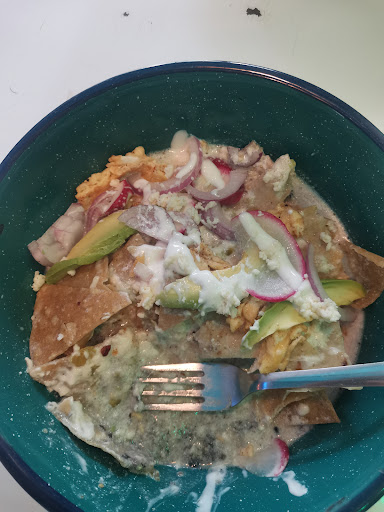 Read moreTenía antojo de chilaquiles y quise probar este lugar. A simple vista no parece un restaurante sino un bar, decidí probar no platillo de chilaquiles verdes con arrachera, guacamole, frijoles y dos huevos estrellados. Acompañados con una Coca Cola sin azúcar, la cual estaba bastante fría, hay muchos restaurantes donde te dan el refresco al tiempo y al vaciarlo en un vaso con hielo, se les escapa el gas. El sabor de la comida fue bueno pero nada especial que me haga volver, ademas, un problema muy grande para mi fue el estar continuamente peleando con las moscas, lo que hizo imposible disfrutar la comida. Lo que si estuvo excelente fue el trato de las dos chicas que nos atendieron, muy amables y muy serviciales. Hicieron un...