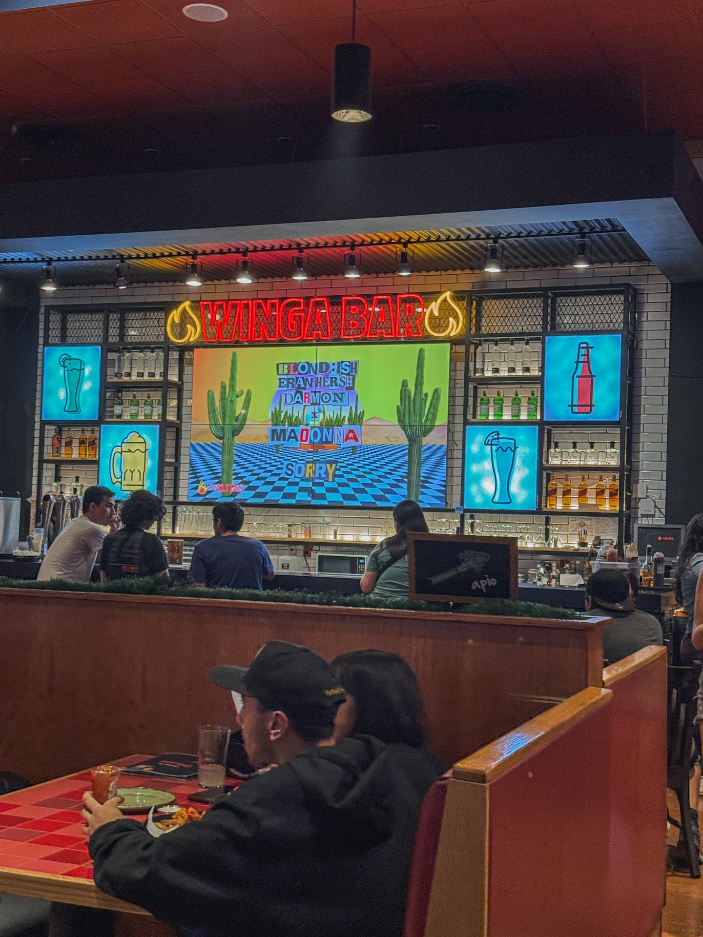 Lo más frustrante es la desorganización. Hay una gran cantidad de meseros reunidos en la barra, aparentemente sin nada que hacer, mientras los clientes esperan para ser atendidos o para que les cobren. Además, en la entrada se acumula una fila de personas esperando mesa, lo que genera aún más incomodidad.