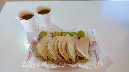 Atienden y sirven muy rápido, está rico y limpio todo. A $23.00 los blandos, $5.00 el vaso desechable de consomé. Hay de condimentos desde salsas y piña, hasta cilantro, cebolla y limón como en cualquier taquería. También venden algunos postres, tortas de birria y todo lo que caracteriza la cadena. Lo malo es que dependiendo de quién te sirva el consomé, puede ser un vaso casi lleno o una cucharada que llega solo al 70% del vaso, como se ve en las fotos que subí (son de dos distintas ocasiones donde sirvieron distintas personas). Tiene mesas adentro, mesas afuera y desde las 8:30a.m. ya están atendiendo de...