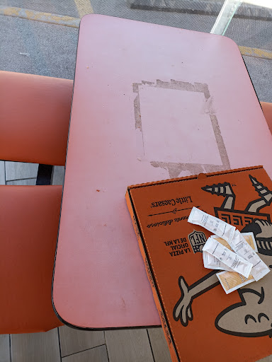 Lamentablemente la atención del personal no pudo ser peor, nos sentamos a comer en el área de mesas y ya casi después de comer más de media pizza, un empleado se acercó y nos exigió que desocuparamos la mesa y nos retiraramos, argumentando que el uso de las mesas es de uso exclusivo del personal, yo no pude ver ningún letrero que anunciará lo que el decia, y me lo pedía para que ellos pudieran tomar su hora de comida. Fueron muy groseros y desconsiderados, tuvimos que terminar de comer la pizza en la calle.