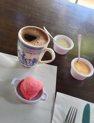Read moreEs un pequeño lugar céntrico pero con muy buena atención, el café de olla está riquísimo y los platillos que pedimos nos gustaron mucho, las salsas también tienen un muy buen sabor y nos regalaron unas galletitas en forma de corazón para nuestro café, cómo nos sentamos en la mesita que está en la banqueta se nos hizo más ameno y relajado, los costos van de acuerdo a lo que se sirve. Solo un detalle, pedí una concha con Nutella para llevar y es la que no me gustó, era una concha X con una vasito de Nutella aparte, no era como venía en la foto y está muy cara, yo recomiendo que mejor vayan y no pidan para llevar porque si he visto varios comentarios negativos...