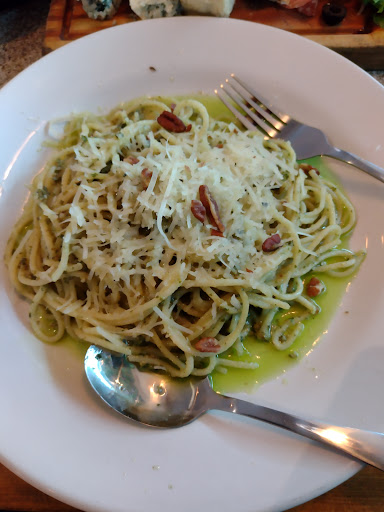 First time visiting and I have to say I was disappointed with the food. The place was clean, the staff was friendly and very helpful however, the simple pasta dish we ordered -spaghetti with pesto- was overcooked and the pesto was prepared with an oil other than olive oil. Pesto without olive oil?! I🤦 guess coming from a family with Italian background there are some items one expects to find in an Italian dish🤷🏻♂️. We ordered an appetizer consisting of varios cheeses and hams but there was no bread in the restaurant 😔 We decided to take the appetizer with us, finished the pasta and went home. The original plan was to spend some time at the restaurant but the food was not what we expected and the live music although good, was too loud. That made it hard to hold a...
