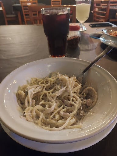 El lugar es amplio, la comida es buena pero creo que bajo muchísimo su calidad. El servicio es amable pero son muy tardados en atender porque solo hay un mesero para todo el restaurante, algo que no me gusto nada es que te venden jarra de limonada o naranjada y es solo refresco peñafiel en jarra con hielos y el precio es como el triple de su costo normal, a mi paracer un abuso en ese sentido porque juran qué es natural y no es cierto. La pizza es buena, les recomiendo cualquiera porque realmente el sabor es bueno, prueben el tiramsu es delicioso. Antes daban pan como de la misma masa de la pizza como aperitivo mientras esperabas la comida y ahora ya no. Lugar 6/10 Sabor 8/10 Precio aprox por persona $200-250 con bebida El estacionamiento no es problema, siempre hay lugar en esa plaza. Pueden entrar fácilmente personas con sillas de ruedas y bastones. No me parece un lugar apto para niños, no hay área de juegos ni menú...