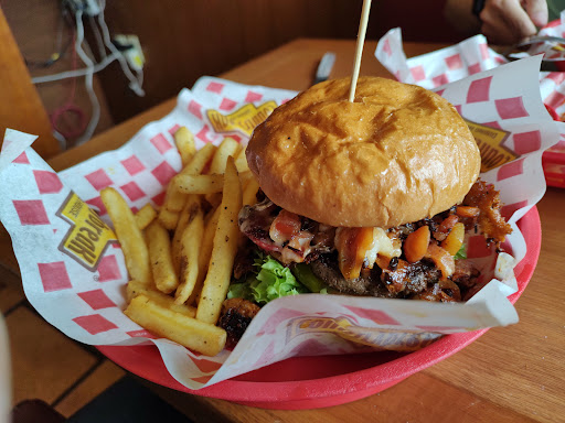 Read moreEl lugar no es muy grande, pero está muy cómodo y acogedor. Desde que entramos, la recepción y la atención fueron geniales, nos ofrecieron mesa y bebidas casi enseguida y todo el tiempo estuvieron al pendiente. La comida es muy rica, mención especial para la hamburguesa Land and Sea, es simplemente deliciosa; además, todas las hamburguesas están acompañadas de una buena porción de papas a la francesa que se puede agrandar o cambiar. También probé los boneless y estaban muy ricos aunque la salsa está un poco dulzona (personalmente no soy fan pero para quienes no gusten o no toleren el picante, les puede gustar), y por último tienen una muy buena variedad de refrescos. Los precios son promedio, creo que paga uno lo justo por una buena porción de comida. Si llegas en coche, estacionarse puede ser...