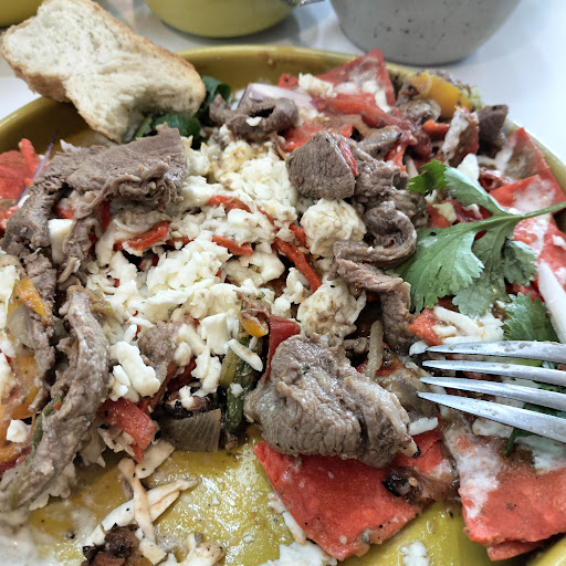 Hoy 16 de Febrero del 2025 por fin visite este restaurante para desayunar, mi sorpresa fue al llegar me asignaron mesa, me dieron la carta, pero tuve que alzar mi mano varias veces para que me tomaran mi orden, me sirvieron ya tarde y cuando me dieron mi Chilaquiles birria, me lo dieron sin cubiertos, se los pedí y solo me dieron tenedor, les pedí un cuchillo para partir la quesadilla y dijeron que no tenían porque estaban sucios, les pedí una cuchara para agitar el café después de agregar el azúcar y tardaron 3 personas que atienden para darme la cucharita, les pedí bolillo y tardaron eternidad para darlo, esto mientras muchas personas esperaban entrar, no entiendo su éxito, finalmente, el platillo chilaquiles birria su sabor es a mole, la birria tiene muchos huesos y nervios que no se pueden masticar y finalmente el sabor después de degustarlo no es bueno y pesado, favor de mejorar. p.d. Calidad va. Precio vs. Sabor deja mucho que desear, no...