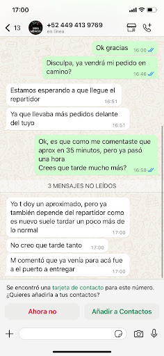 Hace unas semanas pedimos comida a domicilio, no era la primera vez que pedíamos, ya éramos clientes desde por lo menos un año. Yo me tuve que retirar a un evento pero pedí comida de este lugar para mi esposa que se quedaría. Al llegar el repartidor la horrible experiencia para mi esposa UNA MUJER comenzó. El repartidor fue sumamente irrespetuoso con mi esposa al dirigirse con comentarios indebidos, la comida venía manoseada y venía menos de la comida como si alguien hubiera comido de ella. Mi esposa le pagó con un billete de 500 pesos (la cuenta siendo 150 pesos) le dijo que volvería con cambio y nunca volvió. Nunca nos resolvieron la situación el cambio ni absolutamente nada, sólo una disculpa. Si pueden evitar este lugar háganlo a toda costa. Pésima...