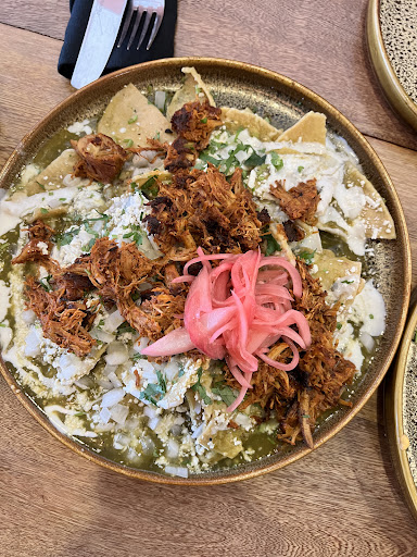 También probamos los chilaquiles verdes con chilorio. La salsa de los chilaquiles estaba muy rica, y la porción es generosa, sin embargo el chilorio nos pareció que era de lata.