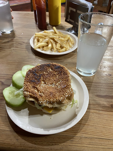 Read moreEs en realidad un muy buen lugar para comer una hamburguesa, sin gastar demasiado y con un muy buen servicio, quizá solo es algo extraño que este como en sótano que se percibe algo húmedo, sin embargo no es tan malo eso, el servicio es rápido y los alimentos son buenos, es limpio y tiene un buen de pantallas por si te gusta estar viendo ya sea que pongan una película o algún...