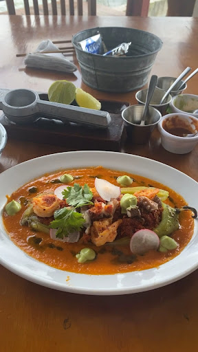 The music is very loud. Too loud. They gave us a seat right under the speaker so we left. In town we didnt find better option to eat in the area in the moment so we returned accepting the blasting music. Luckily they had a table away from the speaker. As we came nobody paid any attention to us, we had to raise our arm and ask for the waiters attention. I felt like service did me a favor when they finally stopped by. I ordered seafood rice. It came quite fast. However, it was supposed to be with 4 types of different seafood. It came with two. And without the one which was main reason why I ordered in n the first place. AFTER we again waited for the attention of the waiter, I pointed it out and ask him where are the other 2 seafood. He took a plate back and came back and said they dont have them. And if I want it or if I want to cancel my order. This is a touristy place with touristy prices. So I didnt accept "we dont have 2 out of 4 main ingredients" AFTER I waited for the food and AFTER they brought it. I decided to cancel my order. We also orsered a lemonade which was 60 peso - way too...