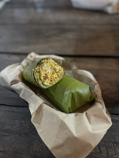 And let's not forget the banana leaf wrap A touch that takes the burrito to the top Soft and pliable, it hugs the ingredients tight Creating a texture that's simply just right