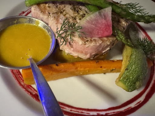 The grilled fish dish was perfectly cooked—tender, juicy, and wonderfully complemented by fresh herbs and vegetables. The accompanying sauce added an extra layer of flavor that elevated the dish even further.