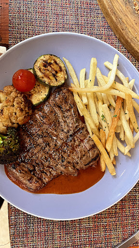 When we travel we never go back to the same restaurant twice as we try and get variety in places in food....this restaurant we did though, we couldn't help ourselves. The food was amazing! We highly recommend the garlic bread, the curry, the vegetable skewers and the steak. The garlic bread is nice and chunky, cooked perfectly. The steak was the best we have had in months, cooked perfectly medium and paired with an amazing sauce and salad. The vegetable skewers were filling and full of variety and flavour. The curry, I cannot stop thinking about it. It was delicious! We got the tropical version and it was bursting with flavours. Everyone was so lovely, helpful and attentive! They somehow could anticipate our every need. The wine is excellent and they have an option for chilled red wine which we appreciated after being in the heat. The music was so good we now have the playlist and the atmosphere was very chilled but classy at the same time. Don't go to Bacalar without trying...