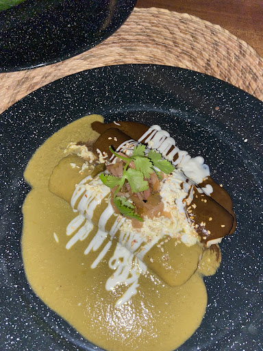 Read moreDid not have a good experience, although the food was good. It was maybe a bad day but hey had a lot of issues. We had a reservation for 8:30 but mixed it a bit, no biggie and got seated by 8:50. But after 3 times asking for water, it finally got there by the end of our meal. The drinks were good and the enmoladas and tacos sudados very original and tasty, those came fast. But after, we ordered the tlayuda and after 50 minutes we decided to leave. The waitress came after with the dish and told us that she warned us that food took some time (the first dishes we got around 15 minutes and everyone else got food too). Shame since their concept is different and interesting with tasty moles (mostly vegan and vegetarian options) and original cocktails. It seems to be ran by women and everyone in the staff I could see was a woman, which I appreciate. If any they should extend their drink list and mezcal options, it seemed short to me. It is not expensive as some comments suggest, not cheap either but they do have live music and an original setting. Maybe go and try it out, some other people left as well but after reading the good comments I think they just had a bad day in the kitchen...