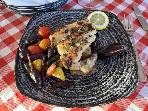 Read moreThe sea bass was among the best I’ve ever had. The vegetables were good. The potatoes were not very fresh. The seafood risotto was perfectly cooked and had a fresh flavor palette. The desserts were delicious and the flavor profile was even better after we let them warm up a bit. The view was pf the sea and it really couldn’t be any better! The 1950s music transported us back to New York Italian...