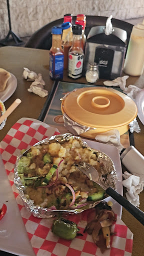 The salsa bar had his selections for topping off the tacos. I heard that sometimes they have onion rings at that bar and maybe tasting one or two is enough.