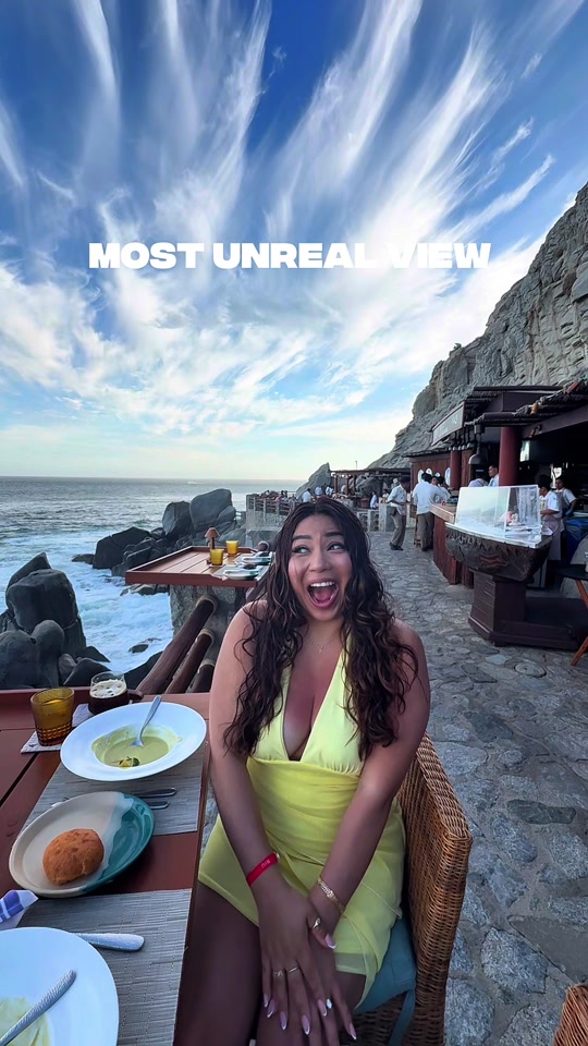 Read moreDid not meet expectations. After having had a week full of home run dining experiences in Cabo, the hype had really built up the expectations for this place. The entire experience, up until we were seated, also really built up the expectation as well as the difficulty of getting a reservation. The drive into the Pedregal resort, and the waiting area, prior to walking over to the restaurant, was very very nice. The drinks at the waiting area were overpriced, but the drinks were not bad. When we were seated for dinner, the chairs are the worst chairs for the uneven flooring they have. The waiter stumbled all over explaining things to us and lacked confidence. Not even to say it was a language barrier situation because I speak fluent Spanish and the communicated with him in Spanish. They provided me with a vegetarian menu after they had been informed I am vegan. They need to either have a vegan menu or be better prepared to explain modifications from the vegetarian menu for vegans. We were being asked for our food order before having been asked for our drink order. The drink menu is mobile so you need your phone to scan the QR code which seems a bit tacky. My fiancé, who is not vegan, was not provided with a menu explaining his meal options outside of what is presented on the chalk board which only shows the entrée and sides. We were very confused about what else would be brought out for him. The soup was great, the appetizers were great, the entrée and dessert, for both of us, was sadly incredibly underwhelming and nothing special. I had the jackfruit stuffed mushroom...I expected the mushroom to be chargrilled, to create a crunchy/smoky bed for the jackfruit. Instead it was all soggy, mushy and topped with a half of an avocado which just screamed lack of effort and creativity to me. Why not turn the avocado into some type of actual garnish instead of slapping it on top like a lump of laziness? The dessert...mine were three desserts...guava/mezcal panna cotta, which reminded me of a slimy version of a Colombian guava bocadillo, banana cake and peach cobbler-like thing which both lacked cohesion, flavor and moistness. My fiancé's dessert was churros. I thought it was really tacky to serve churros at that type of restaurant. Come on people, put some effort into it and reinvent the churro! I would have been good with the soup, appetizers and the drink which was probably the best part of the meal which was a cucumber spicy type drink and it was big so, it lasted the entire meal, which never happens for us. Needless to say, I could even get through 1/4 of my entree, I didn't even touch my second side (rice noodles?), the potatoes were alright, but seemed to be what I gravitated to the most. 100% not worth the money or effort. I guess people enjoy the view the most, but our reservation was at 9:30pm so there was no view for us. The audience was, superficial white people that don't know what else to do with their money, but spend it on substandard food. Would not recommend, it is the only part of our trip we regret. They should really do something different after sunset for late reservations who don't get a view and may not necessarily want to eat so much food that late at night, but still want a part of the experience. It just doesn't seem fair at all to expect people to pay the same amount of money if the experience isn't going to be the same, the the staff is tired and...