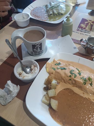 Hago casi 20 min de camino para llegar y la verdad siempre vale la pena , el lugar es lindo , los murales y detalles en herrería que hay en el lugar son interesantes y dan una buena atmósfera , las sillas si podrían ser más cómodas , la comida es rica , económica y suficiente , tu platillo incluye un te ,En cuanto a bebidas no soy fan, eh pedido en algunas ocasiones de fresa y piña y no encuentro diferencia con bebidas de sobre, así que con solo te para mí está bien , pero como dije la comida es rica y por eso siempre vuelvo . La atención es rápida , pero preferiría un menú físico para pensar en que pedir y no tener la presión del mesero por tomar ya la orden. En resumen comer en el molino del Quijote es una grata experiencia a un...