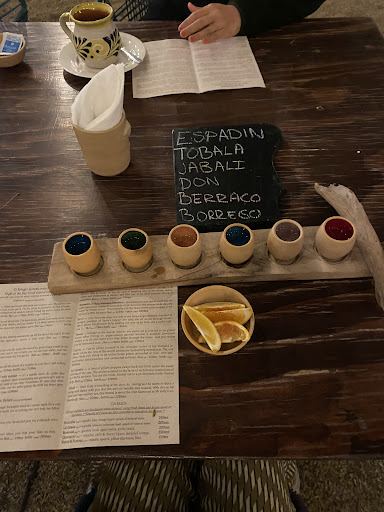 Read moreWe were so lucky to stumble upon this place on an unseasonably windy and pretty cold (for the area) night. There is no set menu, it changes daily - having worked extensively in the food and bev industry, this is always a good sign imo. Given the weather, we were so grateful they had pozole on the menu that night (option of chicken, pork, or veg). Our server was super kind and explained the concept of the menu to us and the daily offerings, as well as the Mezcal tasting. DO NOT SLEEP ON THE MEZCAL TASTING!!! The owners have gone through a lot of work to source these special mezcals from Oaxaca and Guerrero and the staff has collectively written some really great descriptions about them. While we waited for our food, the owner Noel was there - he is Native, having grown up in Guerrero and has some great stories to tell about his life. The food was so fresh, nourishing, and made with love. Of course we had to buy his cookbook, and were so sad we wouldn't be in town for his cooking class. We will definitely be...