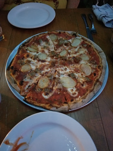 Read moreEl lugar es bastante pintoresco, ubicado en el Corazón de todos santos, es un pequeño hotel con su propio restaurante, a la llegada nos sentíamos perdidos ya que no somos del lugar y nos gusta visitar el pueblo deves en cuando para probar una cena diferente, al entrar al lugar había solo un par de mesas y un solo mesero para ellas, no recuerdo el nombre de esta persona fue amable y estuvo atento a su servicio, el único punto negativo que yo podría hacer la observación, fue que al llegar nadie del personal nos saludo, ni el cocinero ni el negro, ni nos invitaron a pasar, solo nos voltearon a ver y nos ignoraron, ya después de eso empezó a haber un poco más de interacción con el personal, pedimos una pasta tipo Alfredo con camarón, un poco simple pero buena a mi gusto, una pizza 4 quesos con peperoni y una pizza especial gallo azul, encuenstion de pizzas muy muy ricas, ingredientes de calidad y la masa fresca, en conclusión muy buenas pizzas y bastante bien preparadas, con una sola de ellas comen dos personas sin problemas, tienen su day pass...