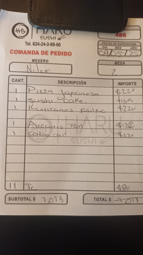 Read moreFood was very solid. A little out of the way but worth it. Very unique in that a lot of rolls used different papers to wrap. Would recommend the special roll and the sashimi plate. They only have menu in Spanish so bring google translate. The staff does speak English...