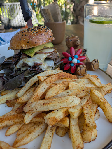 Read moreWe really enjoyed the place. It may be located near big busy streets, once you enter you forget this. Nice, shaded, many plants and trees, nice pond with fish. We were there just before 3pm so the menu was still the breakfast menu. I like that the menu does not have to many options, which reassures and makes you think that they use fresh products. We had the salmon bagel and the chicken curry bagel and both were delicious! The bagel is homemade and not to dense as some bagels often are. Really enjoyed it. Our daughter could play in the children's area while we were eating. Service was very good, hope it stays this way. We have been in La Paz for 18 years and we will put this place in our top 5 favourite...
