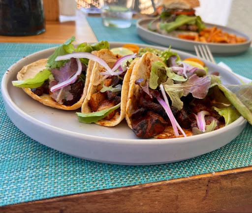 Read moreI’m vegan and I enjoyed a beautiful lunch at this picturesque place with my husband. The salads on the menu didn’t excite me, so asked the server for “otros platos veganos” and he told me they had a lot of possibilities that are not on the menu, including portobello al pastor tacos and veggie quesadillas. I went with the portobello al pastor tacos and they were excellent. The tortillas were delicious and they seemed homemade. The filling had more than just mushrooms, not sure what but it was flavored nicely and really hit the spot. I’m not sure why they haven’t added this to the menu. It was just 3 tacos with no sides; next time I’d probably add a salad or guacamole.
