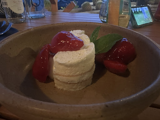 I am honestly so impressed with this place. Not only was this the best Mexican food I’ve had in a long time if not ever, but the service was impeccable and the atmosphere, view, and suggestions were amazing. The server, Pablo, was super helpful with his recommendations and I ended up ordering a mushroom zucchini taco and the braised short ribs. He brought me corn and flour tortillas for my short ribs and I honestly loved both! Most places I’ve gone to in California give you one or two tortillas, this place gives you more than enough! And they appear to be freshly made. My husband had the steak and shrimp fajitas which I tried and OMG! The steak was not rubbery and was tender and so good! The ceviche was incredible as well! I also am usually a red wine drinker but the weather was too hot and the som, Guadalupe, suggested a sav blanc that was easy to drink and perfect with my meal. I highly recommend this restaurant to anyone visiting the area! You won’t be disappointed! I wish I had taken pictures of the entree, I only tight to take a picture of the dessert! Churros,...