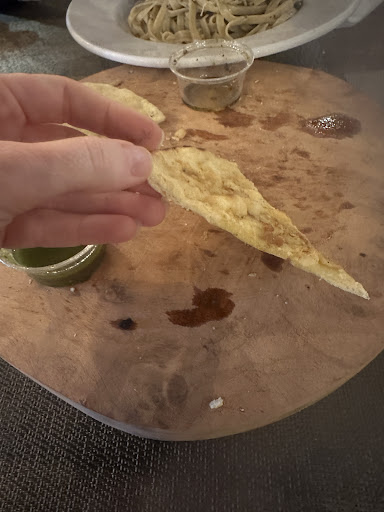 First, the focaccia bread was nothing like focaccia. I was expecting something thick and chewy. Instead, I was served a baked tortilla 🤣