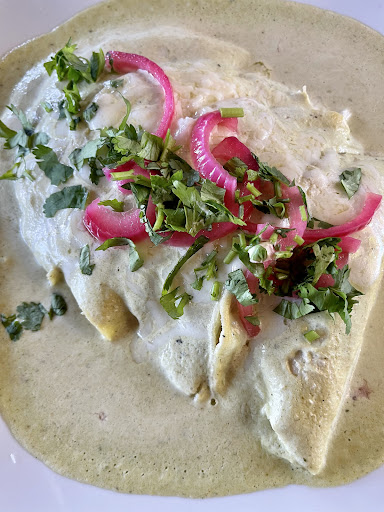 Landi's was fairly close to the B&B we were staying and the menu looked food, so it was an easy decision to try it one evening during our recent stay in Todos Santos. It is a small restaurant with outdoor seating, a very comfortable and relaxing environment. I had shrimp enchiladas with a creamy poblano sauce and my wife chili rellenos stuffed with shrimp. Both entrees were excellent. As we often do, we traded plates about halfway through our meal so we could sample each other's choice. We both thought each entree was really good, but we also each preferred our own initial choice.
