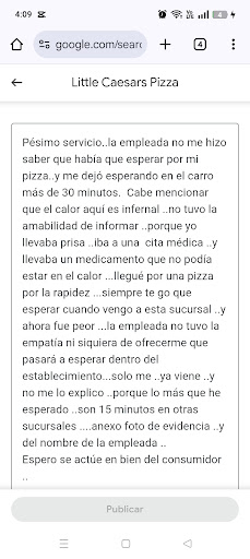 Read morePésimo servicio. No recomiendo este lugar en absoluto. Pedí una pizza sencilla (solo pepperoni) y estuve esperando en mi vehículo por más de 45 minutos. No era un pedido especial ni complicado, pero aún así el tiempo de espera fue inaceptable. Al final, me cansé y me fui sin recibir nada. No volveré y sugiero que busquen otras opciones si valoran su tiempo.#pesimoservicio...