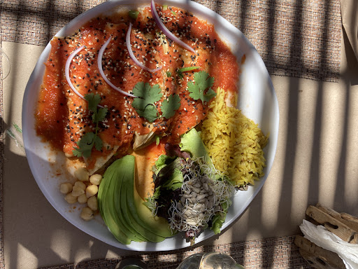 Very disappointed. The menu wasn’t that healthy - more meat options than vegetarian or vegan. Only dairy yoghurt is used for smoothies, no vegan alternative offered. The pancakes and waffles weren’t gluten free for instance. I had the nomada quesadillas which were just okay - for the same price I could get better and more elsewhere. I also went for a smoothie bowl which was very liquid: typically a smoothie served in a bowl needs to have more consistency and concentration than the drinking version. The worst of my experience was the service. I waited so long for my order, and saw a couple of tables with clients who arrived at the same time or later finishing their plates - there were only 4 tables with clients so the place wasn’t that busy. When I asked about my quesadillas, the manager rudely replied “I sent you your quesadilla” as if I ate it or hid it. She also seems to be quite rude with the staff. Obviously they had forgotten about my order, so I got it quickly after that. My smoothie bowl was served in a flat plate… while the bill came in a nice bowl that could have been perfect for the smoothie. The setting is nice. No beach view but a beautiful shaded garden. If you’d go just for that, think twice. I...