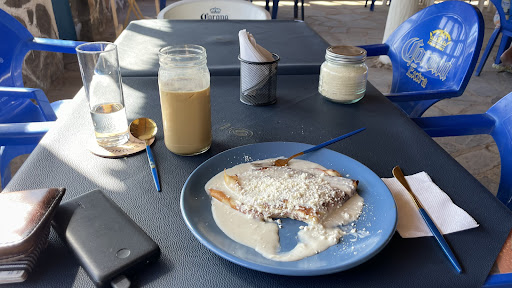 This is a very well-done restaurant on Playa Burro in Bahia Concepcion. Hard stone floors, fans, windows, nice stools and benches, friendly faces. A mix between sailors and RV'ers. Food was excellent, very fresh. I got the Hamburguesa de Camerones and my wife got the Hamburguesa de Pescado. Both were similar sandwiches and sides, just a different protein. My Camerones (shrimp) were large and well spiced -delicious! Both sandwiches were on a mexican-style bun (a little denser than we find in the states and Canada. Gobs of yummy cheese and salty pickles. Both came with sides of Patas (fried potatoes) and a small kale tomato salad. This place does offer coffee and homemade pastries as well as breakfast dishes. The prices are quite high, a downside, on par or higher than in the USA. Which is a side effect to the massive minimal wage increases in California, as Mexicans no longer want to work down here, so the wages on Baja had to double and triple and include room & board just to get workers to stay and work. We do learn a lot from our journeys around the world, one slow nautical mile at a time. If you are in Playa Burro, stop at Nomadico for an excellent delicious and comforting meal. You won't be...