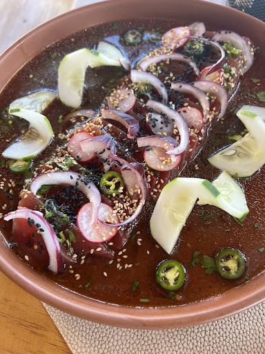 Read moreWow, this was one of my very favorite meals in all of Baja! We were amazed to find such incredible flavors and variety in such a rural location. We had an impeccable margarita and feasted on the tostada de jurel, tuna sashimi and the hamburguesa de cameron, all while enjoying the stunning views on Burro Beach. The food amazed us, but a true highlight was chatting with the owners- beautiful and inspiring people! I loved learning about the homemade chocolate that goes into the baked goods; we bought brownies to go and savored every bite. I actually can’t stop thinking about those brownies and wish I could recreate them in my own kitchen! However, I don’t think it will be the same, so we will eagerly look forward to our next visit. !Muchísimas gracias, Nomadico, por una experiencia...