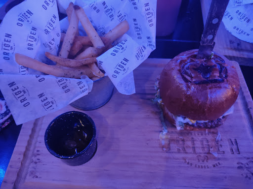 Read moreCada vez que vengo a este lugar no deja de sorprenderme, la hamburguesa con champiñones y las alitas de mango habanero DELICIOSAS, los aros de cebolla muy crujientes y sabrosos, en esta ocasión hubo un detalle, la hamburguesa Thai no era lo que esperaba mi compañero así que fue lo único que no volveríamos a pedir, me hubiera gustado probarla en particular a mí para tener un criterio más personal sobre esa hamburguesa. Las papas fritas como siempre deliciosa! Y todos los ingredientes de gran calidad! Hay restaurantes que creen que solo la carne es importante y dejan a un lado sus aderezos y salsas, en esta ocasión Origen sabe cuidar sus detalles. Con respecto a lo trasmitido en las televisiones en particular no soy fan de las peleas mucho menos cuando como, pero la selección de música fue muy buena. Esmeralda como siempre súper atenta y pendiente de todo.