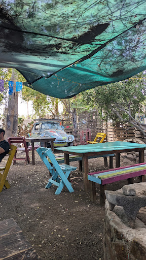 Read moreA cute little garden restaurant in the heart of Loreto. From the street it is almost unnoticeable, surrounded by typical old mexican buildings. But, when you sneak in through the prick portal and begin to see colored decorations and a small garden area with a table built from a VW bug, you'll know you have arrived. This is a bakery with hot breakfast available. Honestly, we are not all impressed yet with mexican bakery goods yet, it's just a style that we are not accustomed to yet. Though they did have a nice soft bun with a crema inside. My meal was very good mexican style benedict and my wife enjoyed her fruit plate which was quite a lot of fruit, yogurt and granola. The staff was very friendly, but not especially attentive. Oh, and as with every mexican restaurant, the fresh squeezed orange juice...
