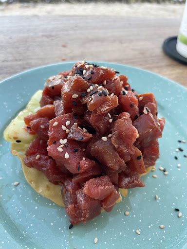 Food 10/10, recommend The chicharrón de pulpo and tuna chicharrón, the tuna tostada was incredible, so much tuna! I loved the salsa that came with the chips, I asked for more, it was delicious! My boyfriend also had the shrimp, the shrimp was good, although he did remove them from the batter as it was a little too much. We also tried the pulpo taco (not chicharrón) unfortunately we sent it back as it was a little chewy.