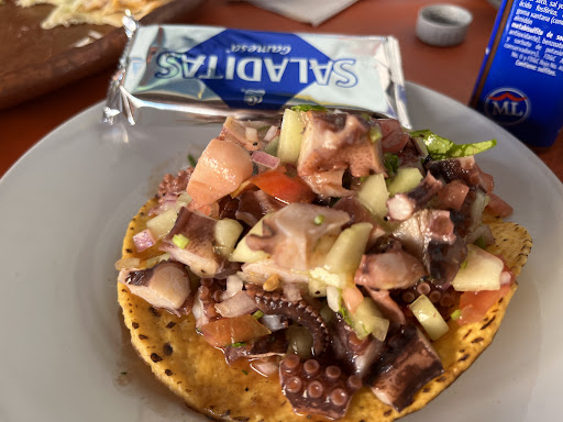 Read moreSmoke marlin quesadilla plate was so good. Tostada de pulpo was delicious although not the freshest we e had (saw many people ordering so we tried ) The shrimp 35p and fish tacos 30p were yummy. The waiter will bring more toppings if you ask. Bonus clean restroom! Long wait during rush hours. The Pescaderia next door sells fish at a okay price if you buy local fillet (comes from PTA lobo, if comes from Cabo costs more). We still prefer Los Claro in Pecadero where they have a...