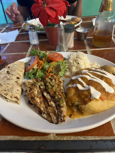 Rip off. The breaded fish (perico) was thick and too toasted making it hard, the chile rellenos were overcooked and gave me an upset stomach. The prices are RIDICULOUSLY EXPENSIVE! The service was ok, they made us food not on their menu but it was way more expensive than eating at the local resort, this is on a dirt street, no windows, no ac, just a corner joint that should be inexpensive. We felt taken advantage off. It was the only place open nearby at 10:30am. Make sure to check prices before you order. $75 dollars for 2 main dishes, two tostadas and two drinks. Nice palapa. Will not be...