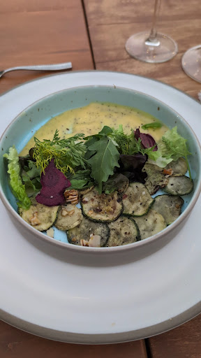 Read moreWe stopped in for lunch on a Wednesday, and were delighted to have an amazing meal. First course, a fresh beet salad, second course I had the fish with an adobo sauce made with chilis from the farm, and roasted vegetables. Hubby had the grilled skirt steak, which he raved about, followed by a port wine braised pear. Absolutely sweet people. I took a photo of the flowers in the back, and one of the ladies came and gave me three of them in water to take home. Do not miss this fantastic fresh, simple, yet gourmet restaurant. Ambiance with the fountains was...