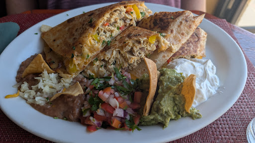 Now on to the food. Our family of 5 loved everything. The chicken quesadilla wasn't your boring chicken and cheese. It had peppers and onions and was huge! Came with a side of beans and guacamole and sour cream. The fish and chips were cooked perfectly. Our usually bottomless pit child who ordered it was FULL. That's always a good thing. My husband and I tried the specials. Mine was imperial shrimp stuff with mozzarella and wrapped in bacon served with a sweet pineapple dipping sauce, veggies and I chose a loaded baked potato as my other side. My husband got the freshly caught yellowfin tuna seared with a garlic butter, white wine and some smokey mexican chili pepper sauce. Delicious! He chose au gratin potatoes as one of his sides. We shared a cesar salad that was yummy. And my daughter got a grilled chicken Cesar salad.