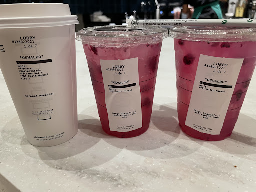 Read moreNo me gustó .. fuimos por unos frappés y la verdad no nos gustaron .. eran de fresa .Piña con coco y vainilla.. pensando que por ser un lugar y marca reconocida sería un lugar ideal para tomar algo .. El servicio 😬😞era la única esperando el servicio y tenía que esperar a que la cajera el atendiera a la chica que está por irse de su turno ( trabajaba allí y estaba del lado de donde está la cajera ) estaba según cobrandole un café y comida por $60 yo quería esos precios 😅.. No me gustó el servicio.. no volveremos a regresar. Nada que ver con el Starbucks que...