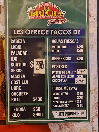 Si estás en La Paz y buscas una cena rica, abundante y a buen precio, Tacos De La Brecha son una joyita que tienes que probar. Los tacos de costilla y cabeza están espectaculares: carne suave, jugosa y con ese sabor casero que conquista desde el primer bocado.