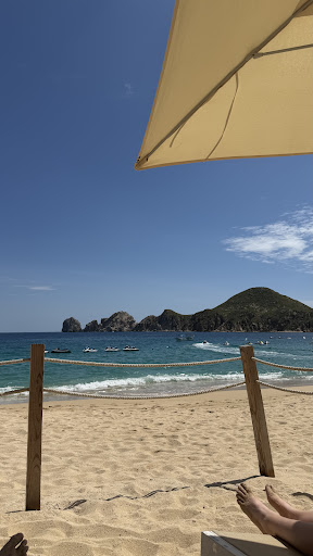 Read moreI wish I had a review that explained details about the food and the ambiance. The gorgeous decor and chill quiet vibes drew me in to the beautiful example of a Cabo beach club and I was excited to see a menu. Upon entering from the beach I saw many male servers walking around in their potato sack looking uniforms and sat on an empty lounge chair to wait for service. Waiting is all I did. Server after server passed me by without even a nod in my direction. I was completely invisible to them. After about 10 minutes I flagged down a waiter to bring me a menu and with an annoyed look he begrudgingly went to get me one. As I browsed the menu a group of three incredibly beautiful women complete with body art and thongs entered the beach club. The servers were like moths to a flame seeing to accommodate their every request. I immediately threw my menu on the lounger and left. Size discrimination is real and alive at this place. Good luck if you’re not young...