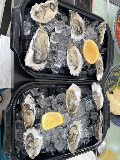 Enjoyed lunch here. I had a dozen oysters, the shrimp spring rolls, and Peruvian ceviche. All delicious! The oysters were large, plump, sweet, and briny. The spring rolls (2), were fresh, tasty, and refreshing. The ceviche was the right amount of salty and sour. We also ordered guacamole for the table and it was fresh, chunky, and wonderful. I plan to return here again for my remaining two lunches. Wow! My mouth is actually watering as I write this.