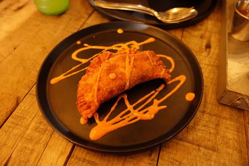 the couple that run this place do it wonderfully and the dog (her name is Lola) will likely lay at your feet protectively for the duration of your meal. the food. omg. it was fantastic. the actual food was amazing, but the food, combined with the pacing, the accompaniments, and the price point - unbeatable. you will not regret the last salmon taco (the name was unusual maybe due to mistranslation but it’s the last option under the taco section of the menu). i have not stopped thinking about the pistachio encrusted honey salmon taco we had. we ordered empanadas, ceviche, tostadas, and tacos - and i would strongly advise you try everything. the tostadas came with a tamarind sauce that just brought the flavours together. the aguachile is hot, but addictive. the trick is to never take a break from eating so you don’t feel the spice. their cucumber peppermint beverage is also a lifesaver and tastes delicious. the empanadas were like a thick crispy wonton with a slurry of mayo cheese sauce.