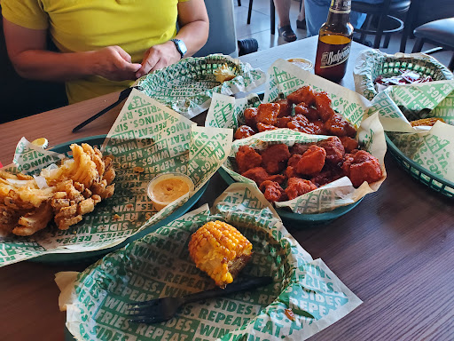 Todo el lugar a oscuras, mala iluminación, los meseros jugando y platicando con los de la barra, las ordenes de alitas vienen incompletas y son tan pequeñas que parecen de mi alegría, pides un refresco y te llevan la pura lata, ni un vaso te dan, lo tienes que estar pidiendo siempre, hasta parece que pides para llevar, las salsas de las alitas estan muy simplonas, la de cajun solo sabe salado y ya, no tienen chiste, el lugar infestado de mosquitos que no te dejan comer y como dijeron en un comentario anterior, todo viene por separado, ya hasta restaurantes de alitas más pequeños dejan atrás a una cadena como wingstop, no vuelvo a ir a ninguno, cada wingstop que voy dan el mismo...