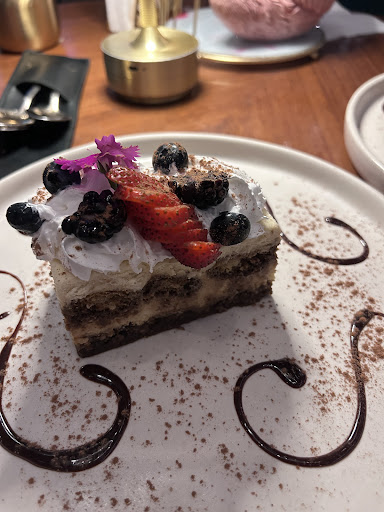 Let’s start with the decor. From the outside, the place feels a bit flashy and ostentatious. It has marble-like ceramic (not actual marble) and a lot of gold fixtures. Once inside, you get the sense that they aimed for something elegant and trendy, but it crosses into loud territory design-wise. There are three main areas: the terrace, the bar, and the restaurant. Next time, I’d definitely choose the terrace or bar area, because the section we were seated in lacked good taste, and the lighting was oddly harsh and uninviting.
