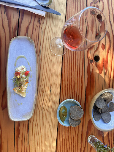 The drive-in is absolutely beautiful. The dining area is set up under trees and wood patio. If you are not an outdoor person, be aware that mosquitoes and bugs will be joining you for dinner. We thought to ask for a heater to help with the mosquito problem, however, we were told they only had 1 available and another table was already using it. To be fair, when that table left, we asked to move and they were very kind to allow us to. A little surprising that such a highly rated place like this would have only 1 heater. We could see 4 “broken” heaters in the back. A bit weird to have them out if they didn’t work. As the courses came, we were ecstatic to experience the wine pairings. To our surprise, although very nice, the server couldn’t tell us anything about the wine. She may have been filling in because we would assume that knowledge of their very own wine would be mandatory but in this case, not only was there no information on the wine but eventually we were told that they ran out of wine! What?! We never realized that a winery could run out of wine. The chef brought over his own personal stash of orange liqueur to pair with our last dish, which was okay but still very disappointing. Overall, we will give this place the benefit of doubt due to the high quality of food and beautiful environment. Next time in Valle, we will give them a try again and hope that this was...
